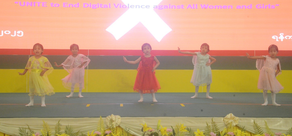 အခမ်းအနားတွင် ရန်ကုန်တိုင်းဒေသကြီးအစိုးရအဖွဲ့၊ ဝန်ကြီးချုပ်မှ အဖွင့်အမှာစကား ပြောကြားပြီး၊ အခမ်းအနားတွင် ဖျော်ဖြေတင်ဆက်ကြမည့် လူမှုဝန်ထမ်းဦးစီးဌာန လက်အောက် ရှိ အမျိုးသမီးသင်တန်းကျောင်းများမှ ကျောင်းသူများကို ဝန်ကြီးချုပ်မှ ဂုဏ်ပြုဆုများချီးမြှင့် ခဲ့ပါသည်။ “အမျိုးသမီးများအပေါ် အကြမ်းဖက်မှုပပျောက်ရေး (၁၆) ရက်တာ လှုပ်ရှားမှု” အထိမ်းအမှတ် Video Clip ပြသခြင်း၊ လူမှုဝန်ထမ်းဦးစီးဌာန လက်အောက်ရှိ ရွှေဂုံတိုင်ကလေးပြုစုရေးဌာန၊ အမျိုးသမီးသက်မွေးအတတ်ပညာသင်ကျောင်း၊ အမျိုးသမီးများဖွံ့ဖြိုးတိုးတက်ရေးဌာန၊ အမျိုးသမီးများပြုစုစောင့် ရှောက်ရေးစင်တာ (ရွှေပြည်သာ)ရှိ ကျောင်းသူများမှ တေးသီချင်းများဖြင့်လည်းကောင်း၊ အမျိုးသမီးကလေးများ သင်တန်းကျောင်း (မလိခ)မှ ကျောင်းသူလေးများက မြန်မာ့သိုင်းအကဖြင့် လည်းကောင်း သီဆိုကပြဖျော်ဖြေ တင်ဆက်ခဲ့ကြပါသည်။