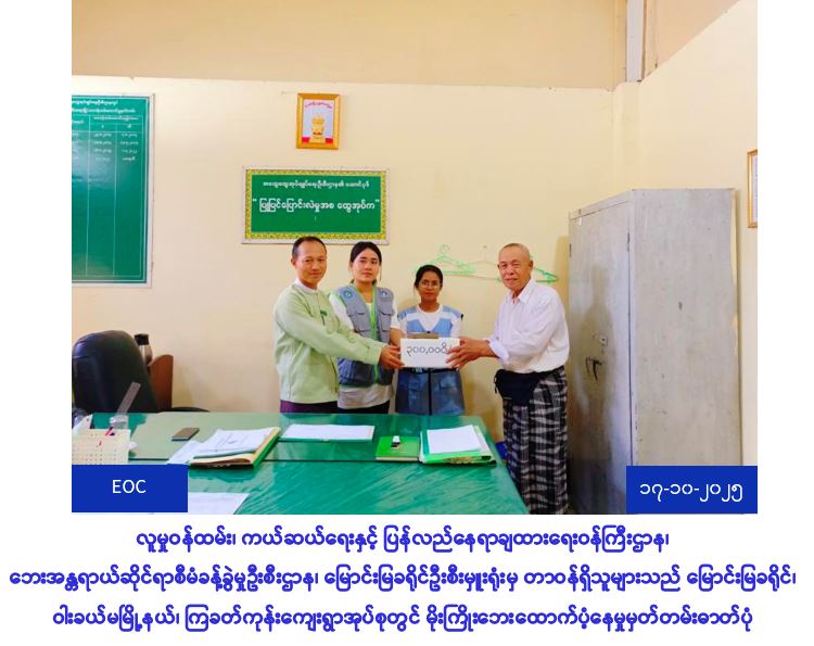 ဘေးသင့်ပြည်သူများ လက်ဝယ်အရောက် သွားရောက်ထောက်ပံ့ပေးအပ်ခဲ့ပါသည်။