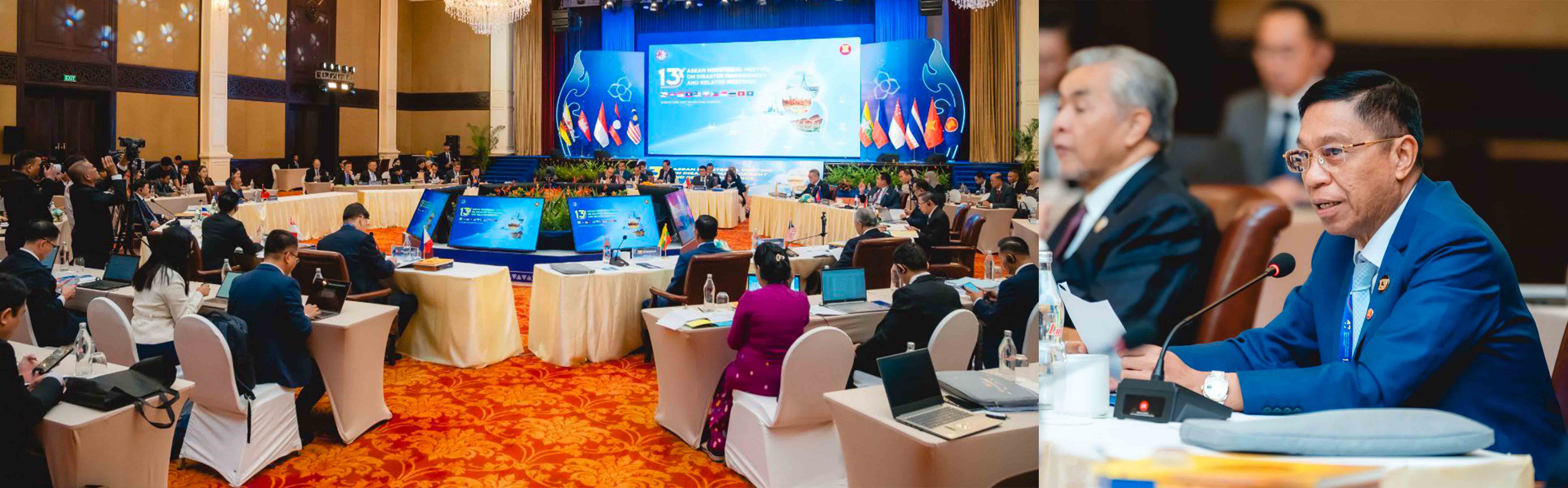 (၁၃) ကြိမ်မြောက်အာဆီယံသဘာဝဘေးအန္တရာယ်စီမံခန့်ခွဲမှုဆိုင်ရာဝန်ကြီးများအဆင့်အစည်းအဝေးနှင့်ဆက်စပ်အစည်းအဝေးများ၏ ပထမနေ့ အစည်းအဝေးသို့လူမှုဝန်ထမ်း၊ ကယ်ဆယ်ရေးနှင့် ပြန်လည်နေရာချထားရေးဝန်ကြီးဌာန၊ ပြည်ထောင်စုဝန်ကြီးဒေါက်တာစိုးဝင်းဦးဆောင်သည့် မြန်မာကိုယ်စားလှယ်အဖွဲ့တက်ရောက်ဆွေးနွေး